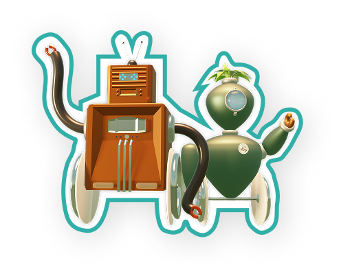 I’m the Environmentally Conscious robot, and this is my trainee, Two-Oh. I teach people about taking care of the environment, and Two-Oh, well, Two-Oh tries to help.
